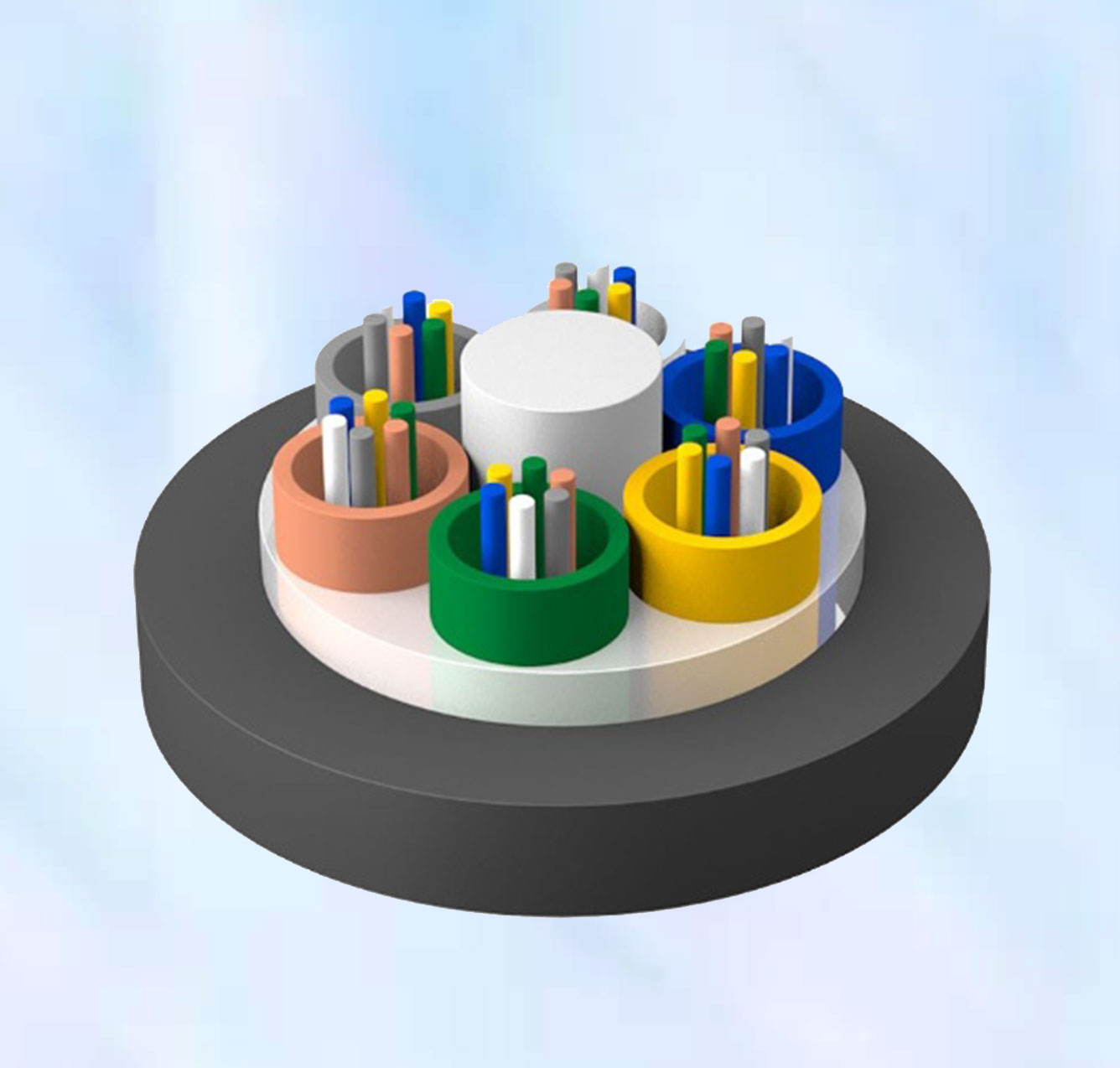 松套層絞式非金屬加強芯非鎧裝光纜 (GYFTY)GYFTY 光纜的結構是將 250μm 光纖套入高模量材料制成的松套管中,松套管內填充防水化合物。纜芯的中心是一根玻璃纖維增強塑料(FRP),松套管(和填充繩)圍繞中心加強芯絞合成緊湊和圓形的纜芯,纜芯內的縫隙充以阻水填充物。纜芯外擠上一層聚乙烯護套成纜。