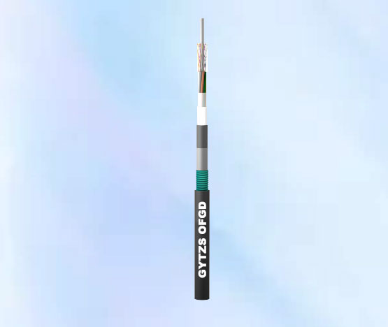 GYTZS 光纜的結(jié)構(gòu)是將 250μm 光纖套入高模量材料制成的松套管中,松套管內(nèi)填充防水化合物。纜芯的中心是一根金屬加強芯,對于某些芯數(shù)的光纜來說,金屬加強芯外還需擠上一層聚乙烯(PE)。松套管和填充繩圍繞中心加強芯絞合成緊湊和圓形的纜芯,纜芯內(nèi)的縫隙充以阻水填充物。雙面涂塑鋼帶(PSP)縱包后擠制阻燃護套成纜。