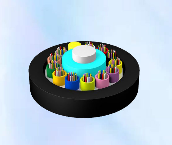 MGFTY 光纜的結構是將 250μm 光纖套入高模量材料制成的松套管中,松套管內填充防水化合物。纜芯的中心是一根非金屬加強芯,對于某些芯數的光纜來說,金屬加強芯外還需擠上一層聚乙烯(PE)。松套管(和填充繩)圍繞中心加強芯絞合成緊湊和圓形的纜芯, 纜芯內的縫隙充以阻水填充物。纜芯外圍擠一層阻燃護套成纜。